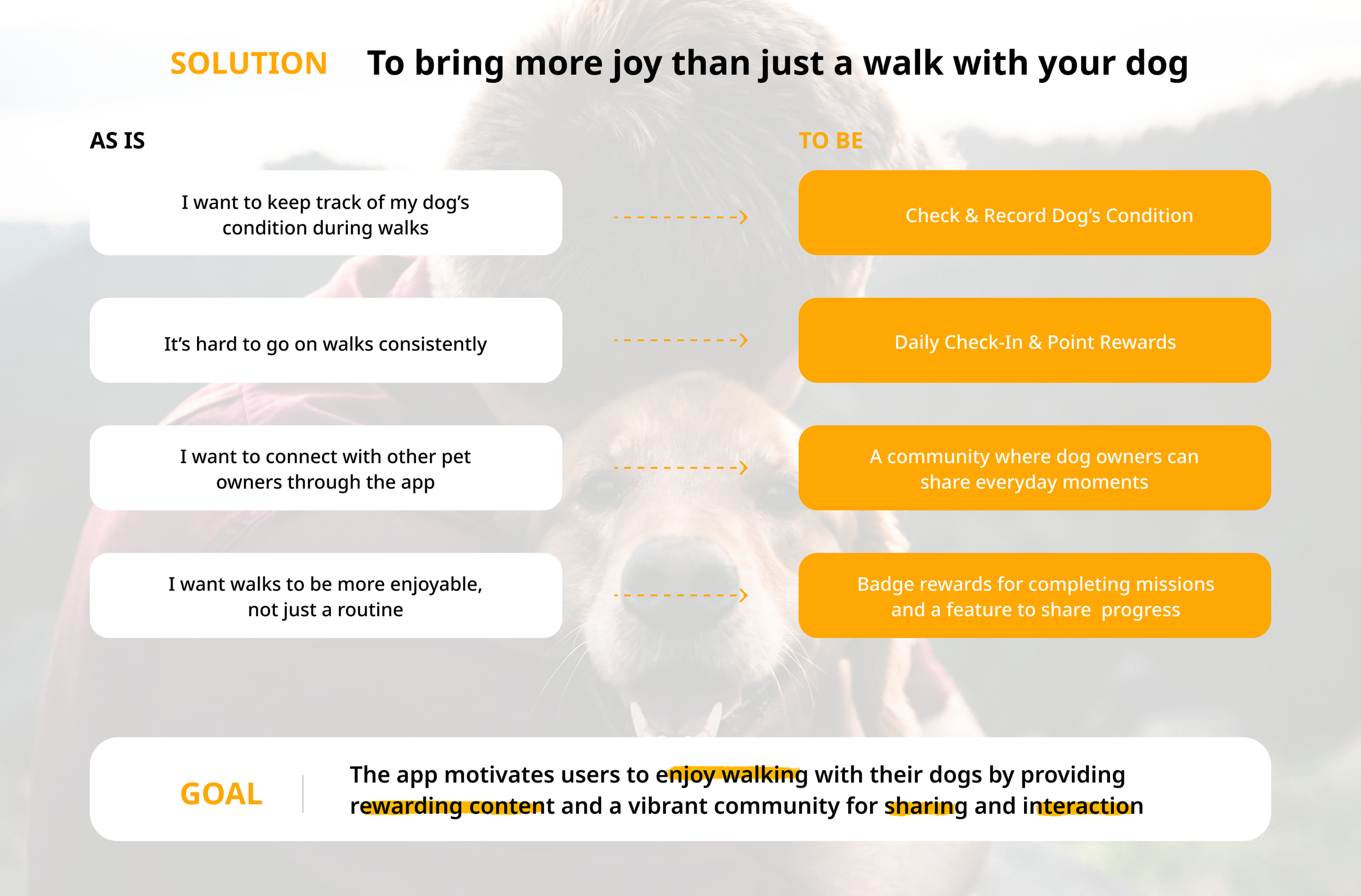 Many dog owners walk their dogs every day, but it can feel lonely and unmotivating. How can we make daily walks more fun, rewarding, and connected to a community?