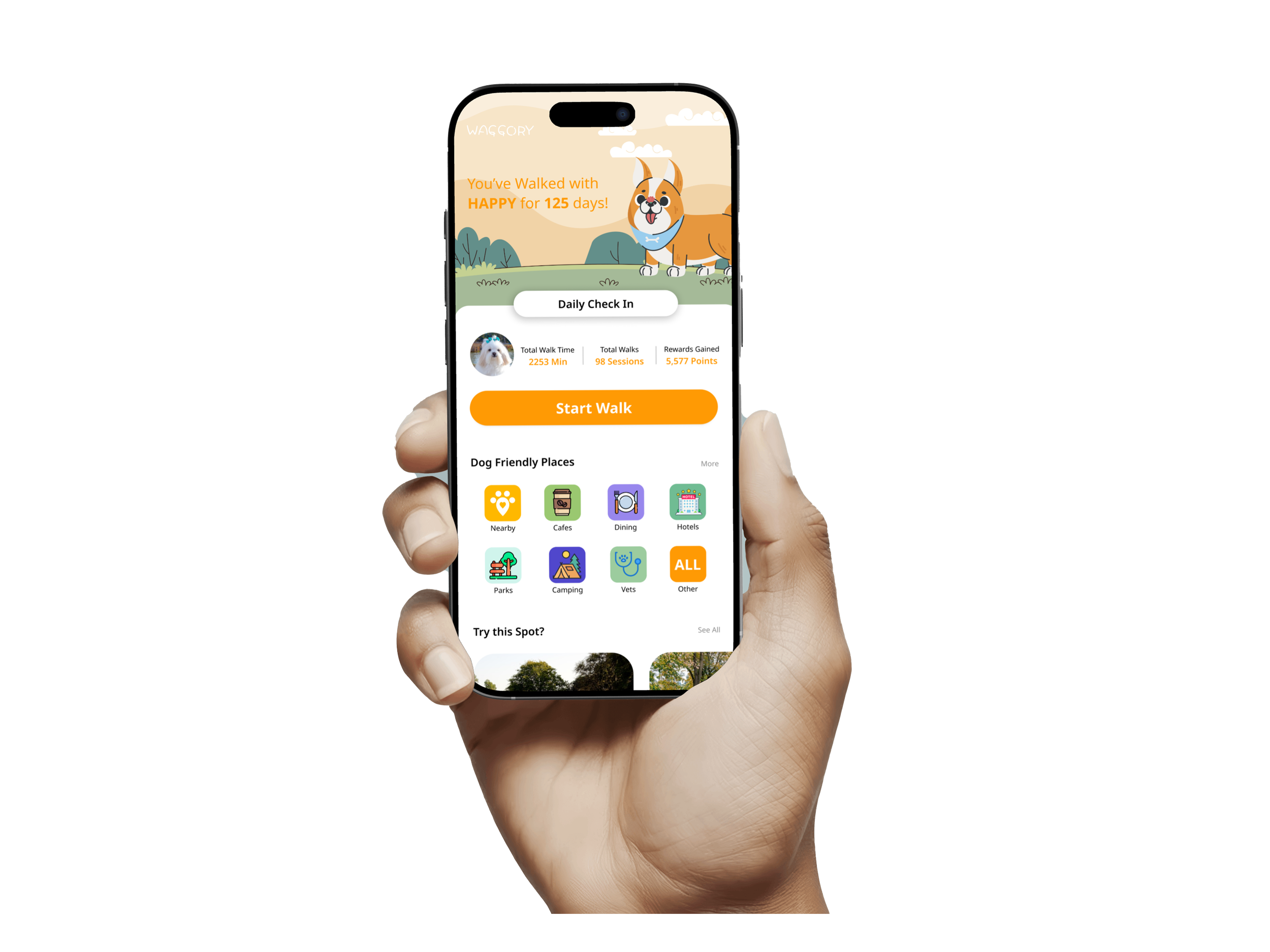 Waggory is a mobile app that encourage dog owners to track their daily walks, connect with nearby pet families, and stay motivated through a gamified reward system. This project blends wellness, community, and habit building into one engaging pet lifestyle platform.